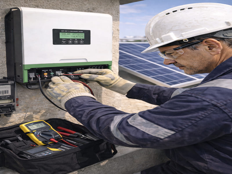 Côté DC, il faut des câbles adaptés (UV, sections cohérentes, connectique propre). Côté AC, les protections et les sections doivent être dimensionnées comme une vraie installation électrique. Les connexions mal serrées ou les sections sous-dimensionnées créent des pertes, de l’échauffement, et des pannes intermittentes difficiles à diagnostiquer.
